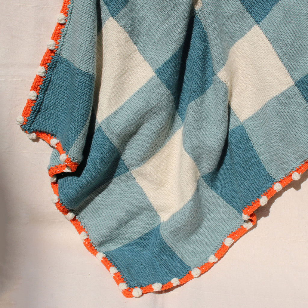 Wenn wir einen greatest Hit von Nicole auswählen müssten, dann würde unsere Wahl wahrscheinlich auf diese Babydecke fallen. Sie ist einfach zu stricken, das Karomuster sieht in jeder Farbe super aus und eine schöne Babydecke können wirklich alle frischgebackenen Eltern gut brauchen. Ein perfektes Anfänger:innen- oder Gemeinschaftsprojekt, da die Decke aus 5 Schals besteht, die am Ende zusammengenäht werden.